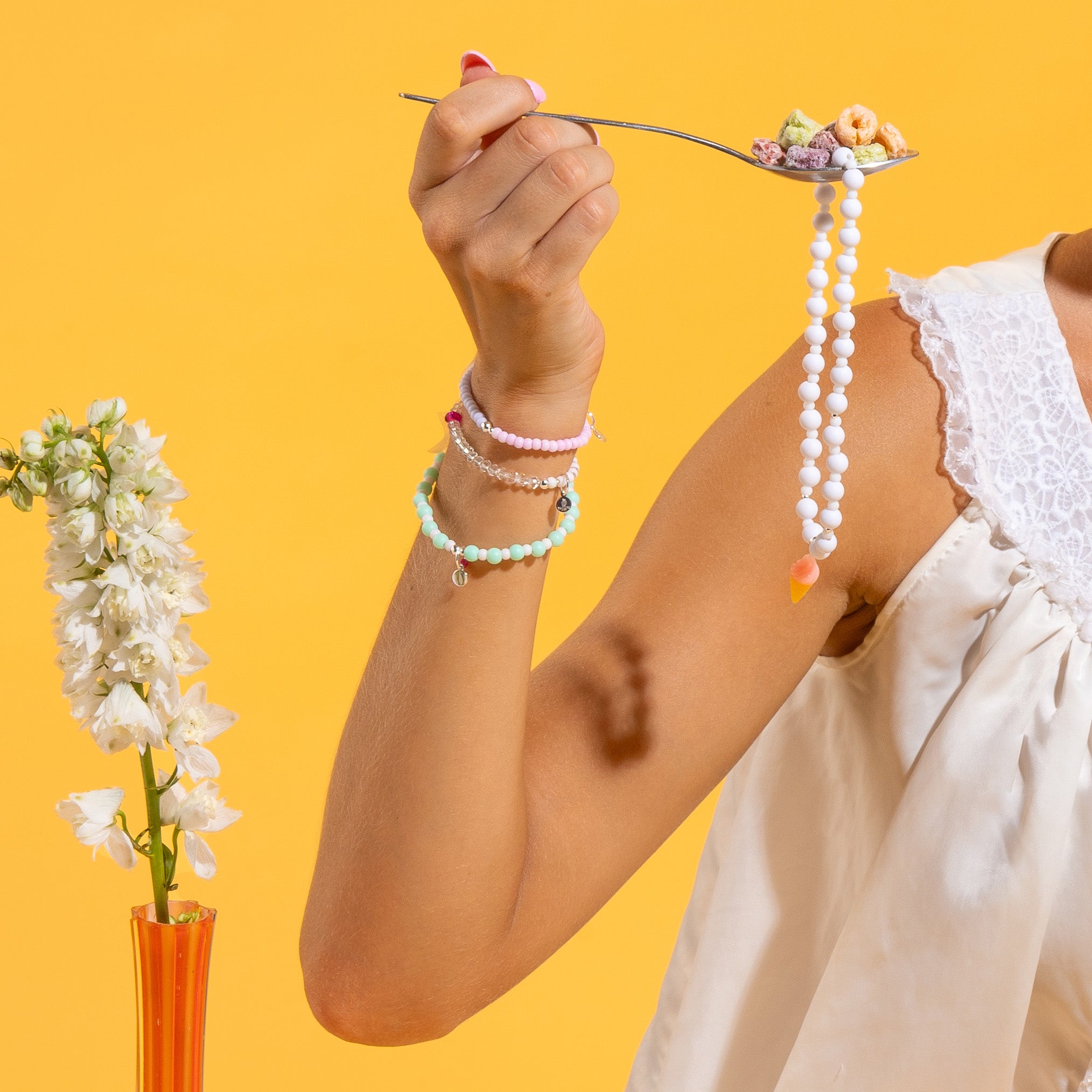 Inspired by the delicious world of sweet treats—cupcakes, ice cream, fruit, and more—each piece is imbued with playful charm and handcrafted quality. From beaded necklaces to crystal bracelets, this food-themed jewelry is sure to add a sprinkle of fun to your everyday.