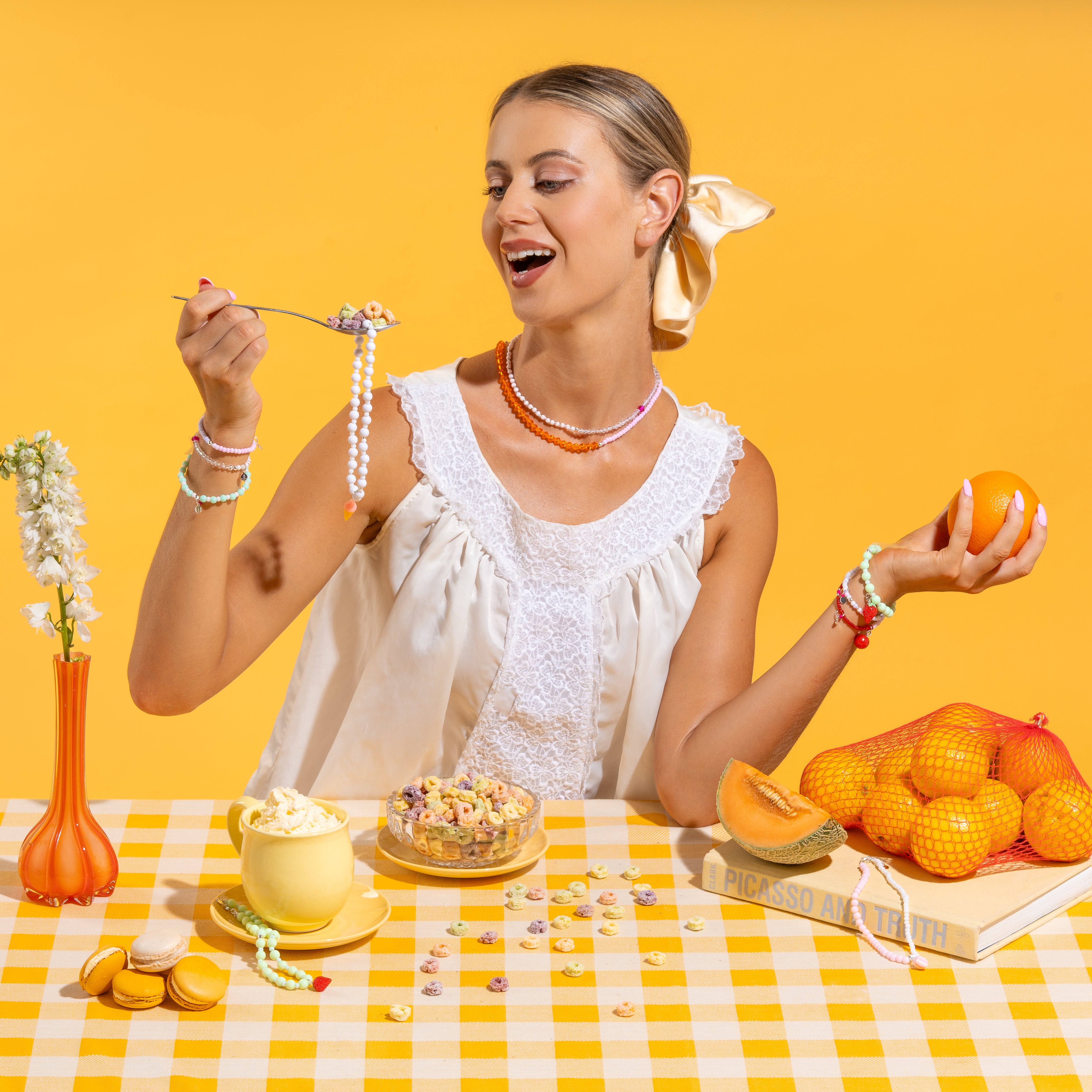 Designed in New Zealand, our pieces are made for fashion-forward people who embrace their femininity with confidence. Inspired by the delicious world of sweet treats—cupcakes, ice cream, fruit, and more—each design is crafted with playful charm and thoughtful detail. From beaded necklaces to crystal bracelets, our food-themed jewelry adds a sprinkle of fun to your everyday style.